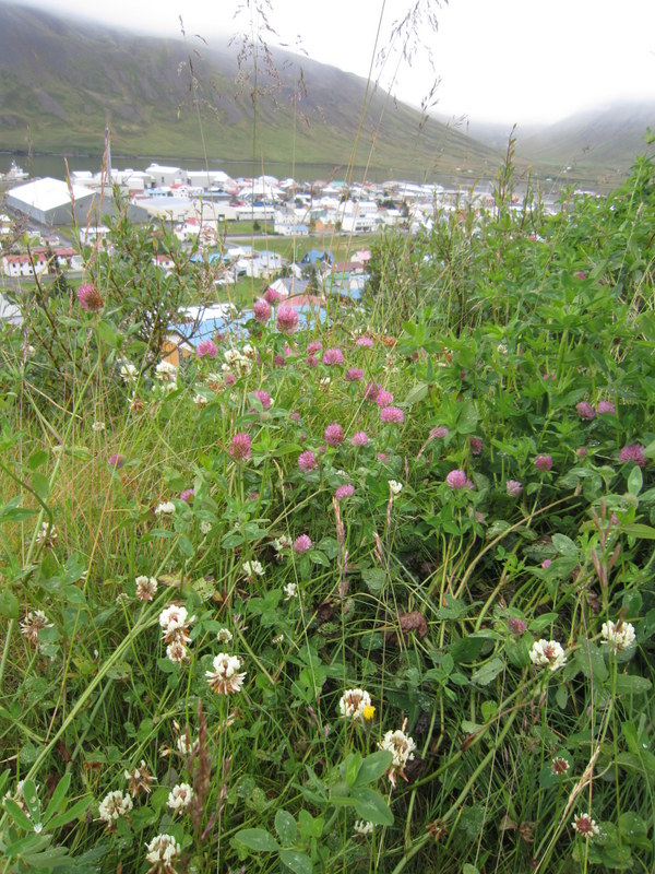 Climbing the trail overlooking the town of Siglufjörður
