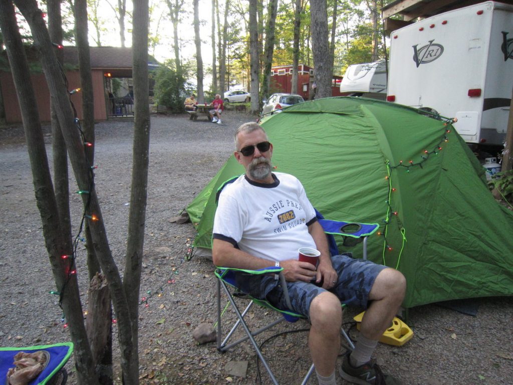 Previous ImageNext Image IMG_9757 We managed to camp twice this year at The Woods. Jeff chillin’ at site 17