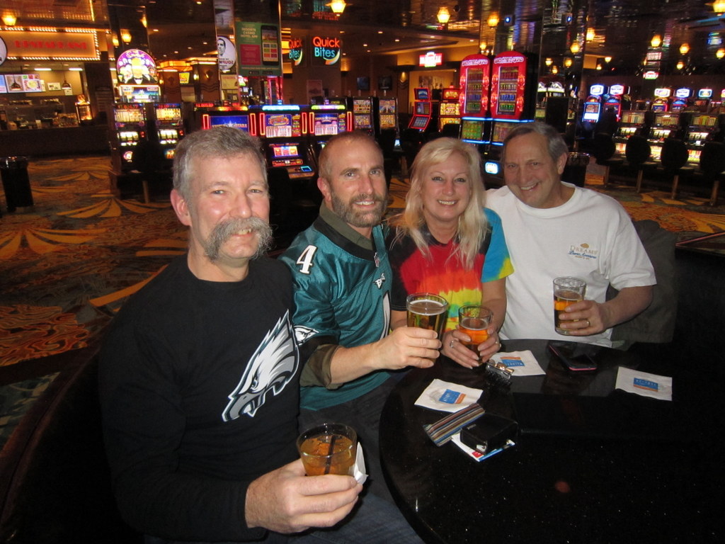 Previous ImageNext Image IMG_9064 Celebrating the Eagles win with free beer @ Resorts – Jeff, Rick, Linda, and Jeff