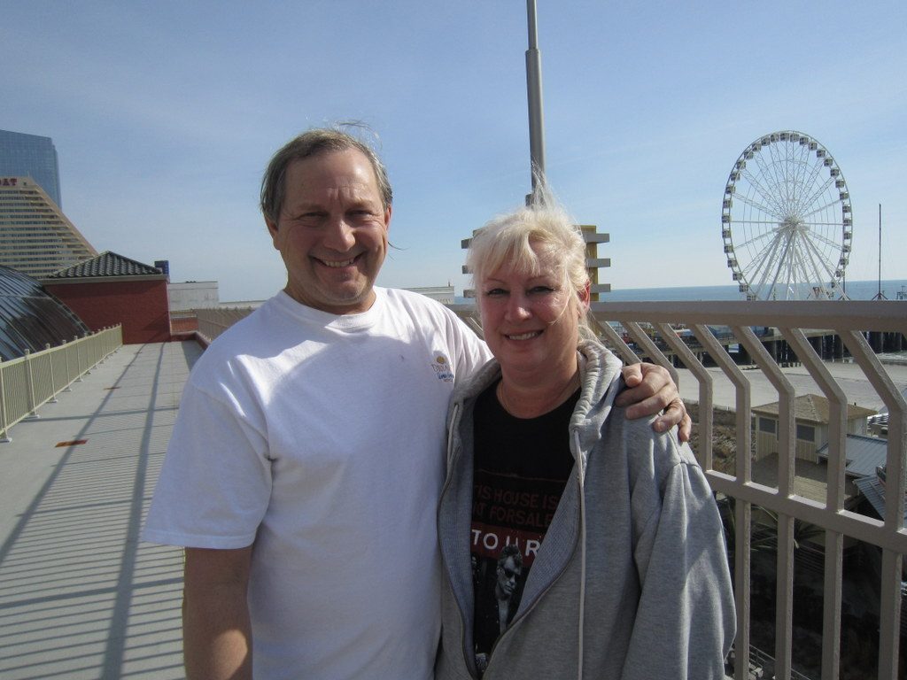 Jeff and Linda on the pool balcony overlooking the boardwalk